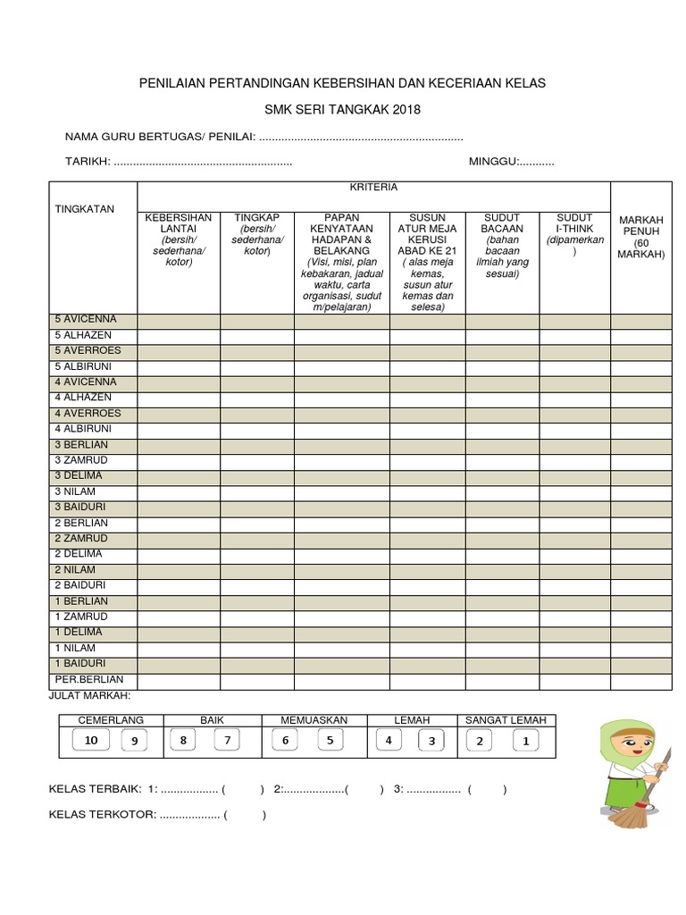 Borang Pemarkahan Pertandingan Kebersihan Dan Keceriaan Kelas Tahun Pdf